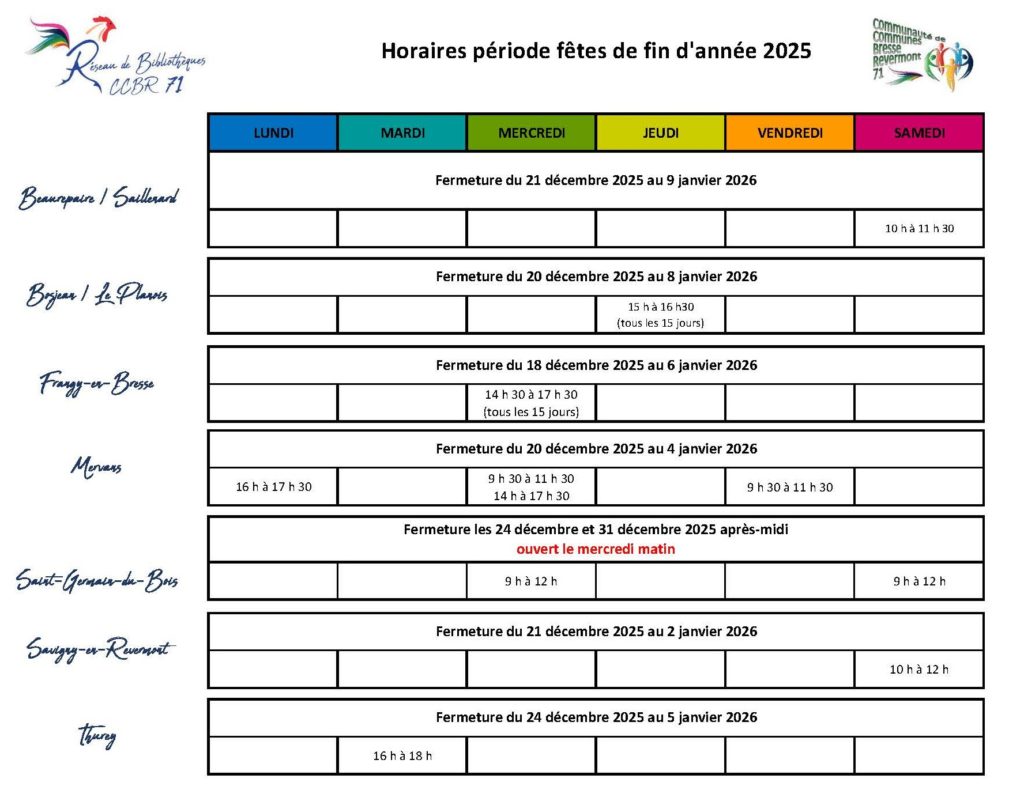 À l’occasion des fêtes de fin d’année, les horaires et jours d’ouverture des bibliothèque du réseau évoluent.